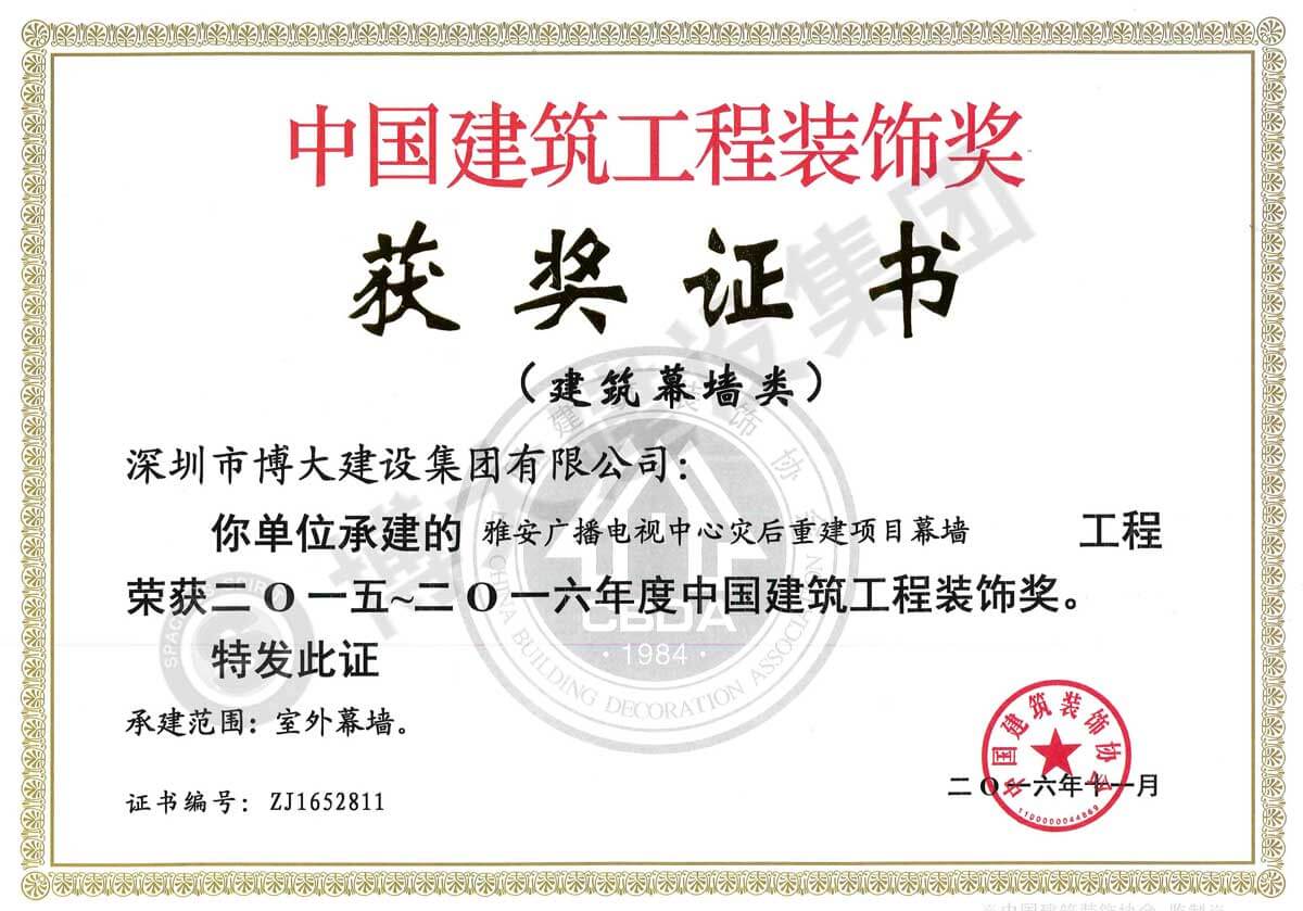 中國建筑工程裝飾獎(雅安廣播電視中心災(zāi)后重建項目-幕墻)